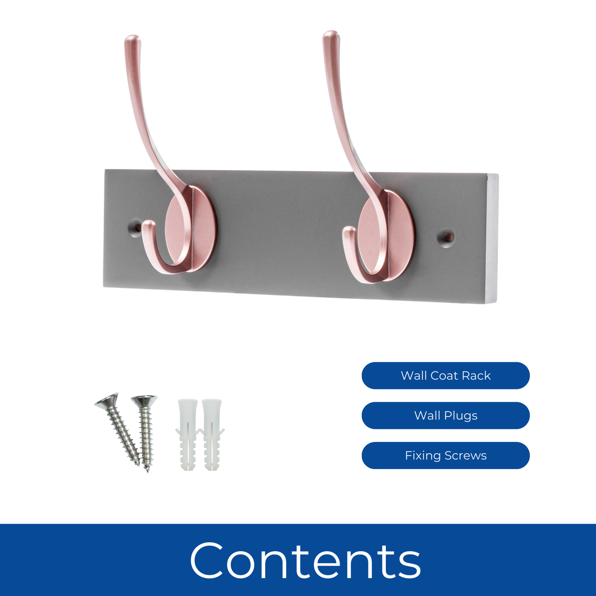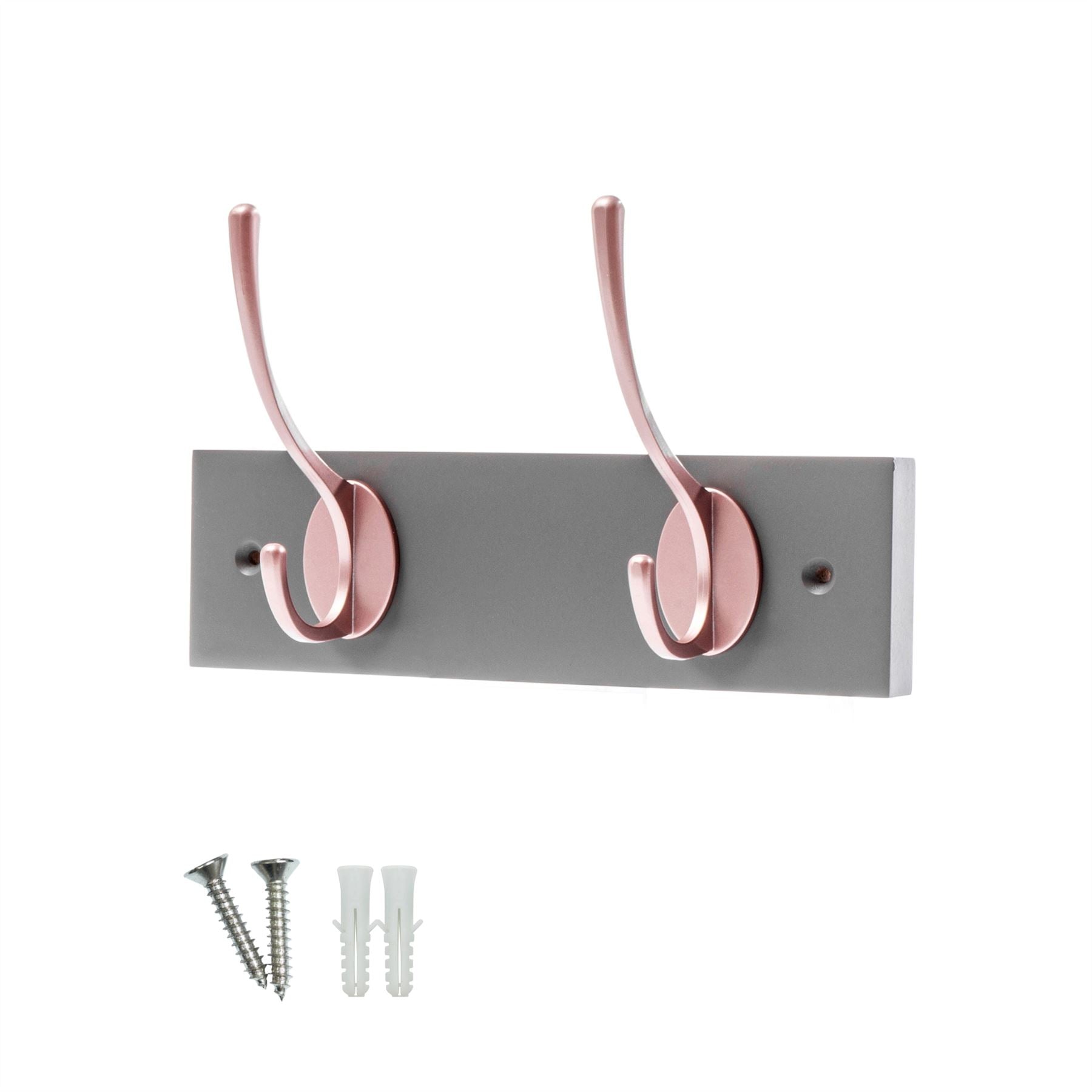 Slate Grey Wall Mounted Coat Rack with Victorian Rose Gold Hooks - 2 Double Hooks