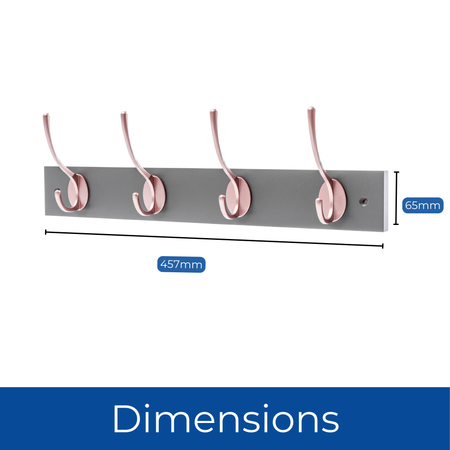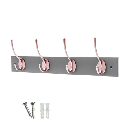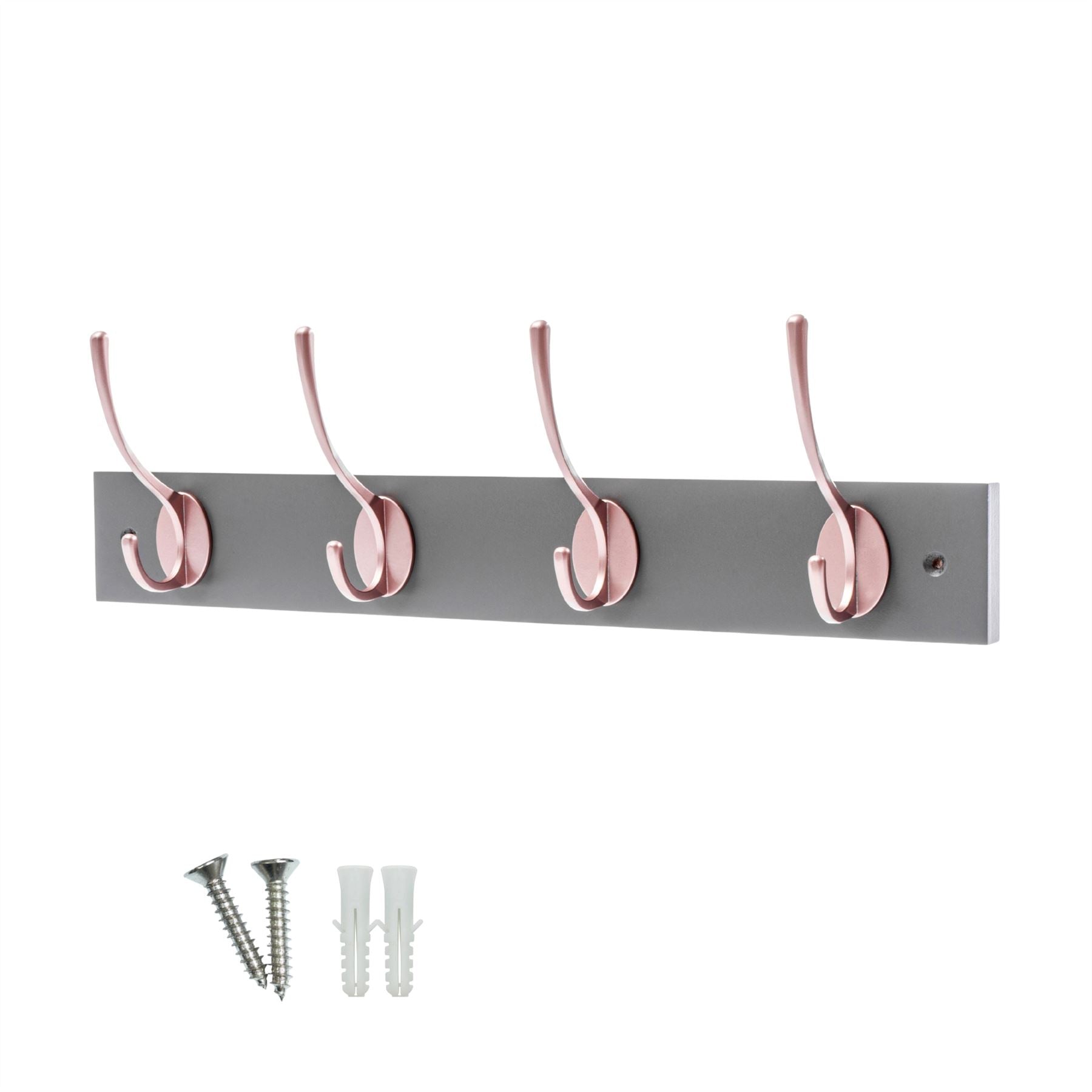 Slate Grey Wall Mounted Coat Rack with Victorian Rose Gold Hooks - 4 Double Hooks