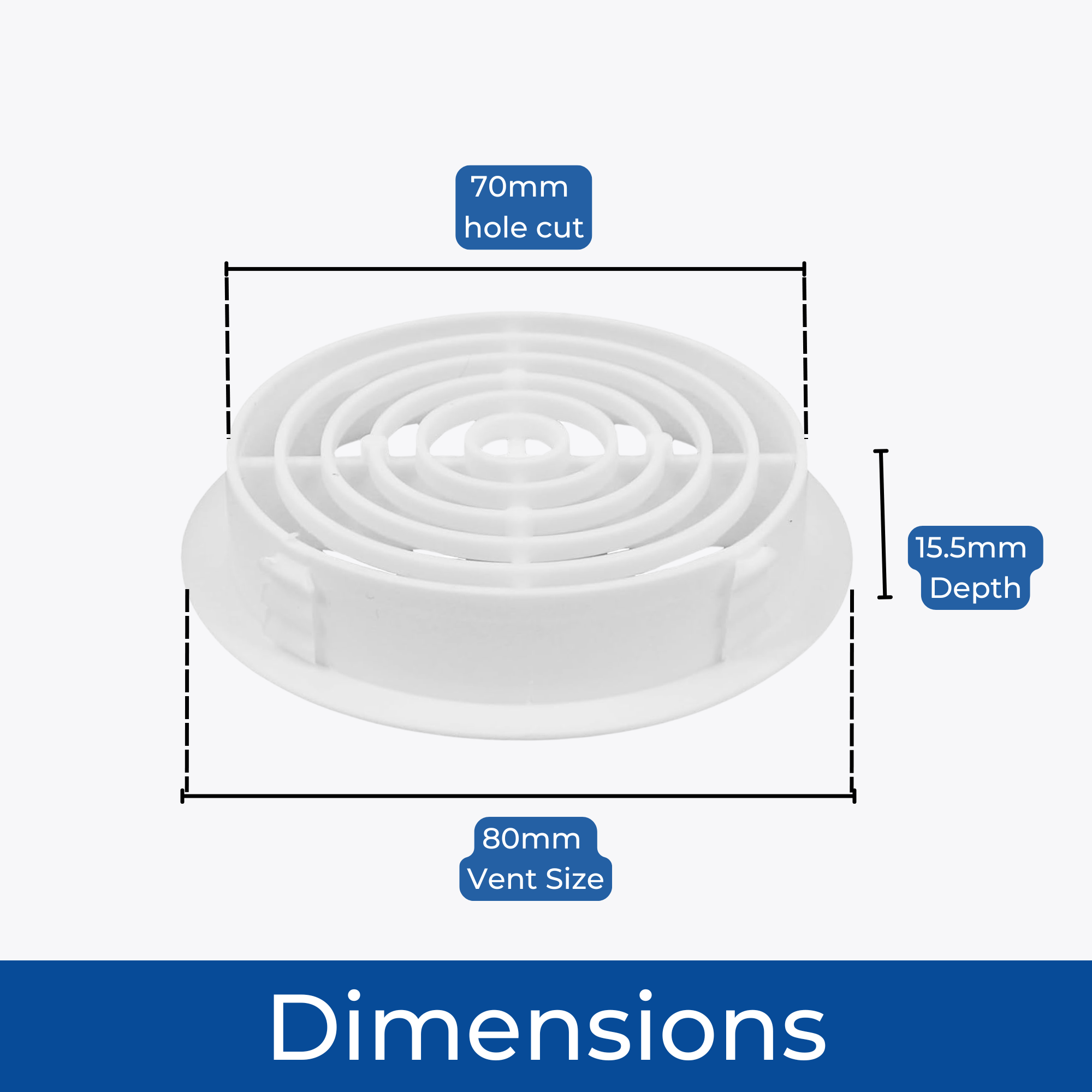 IDEAL DIMENSIONS – Each vent has an 80mm outer diameter with a 70mm internal diameter, designed for 70mm openings, providing a perfect fit for effective ventilation in lofts, roofs, and soffits