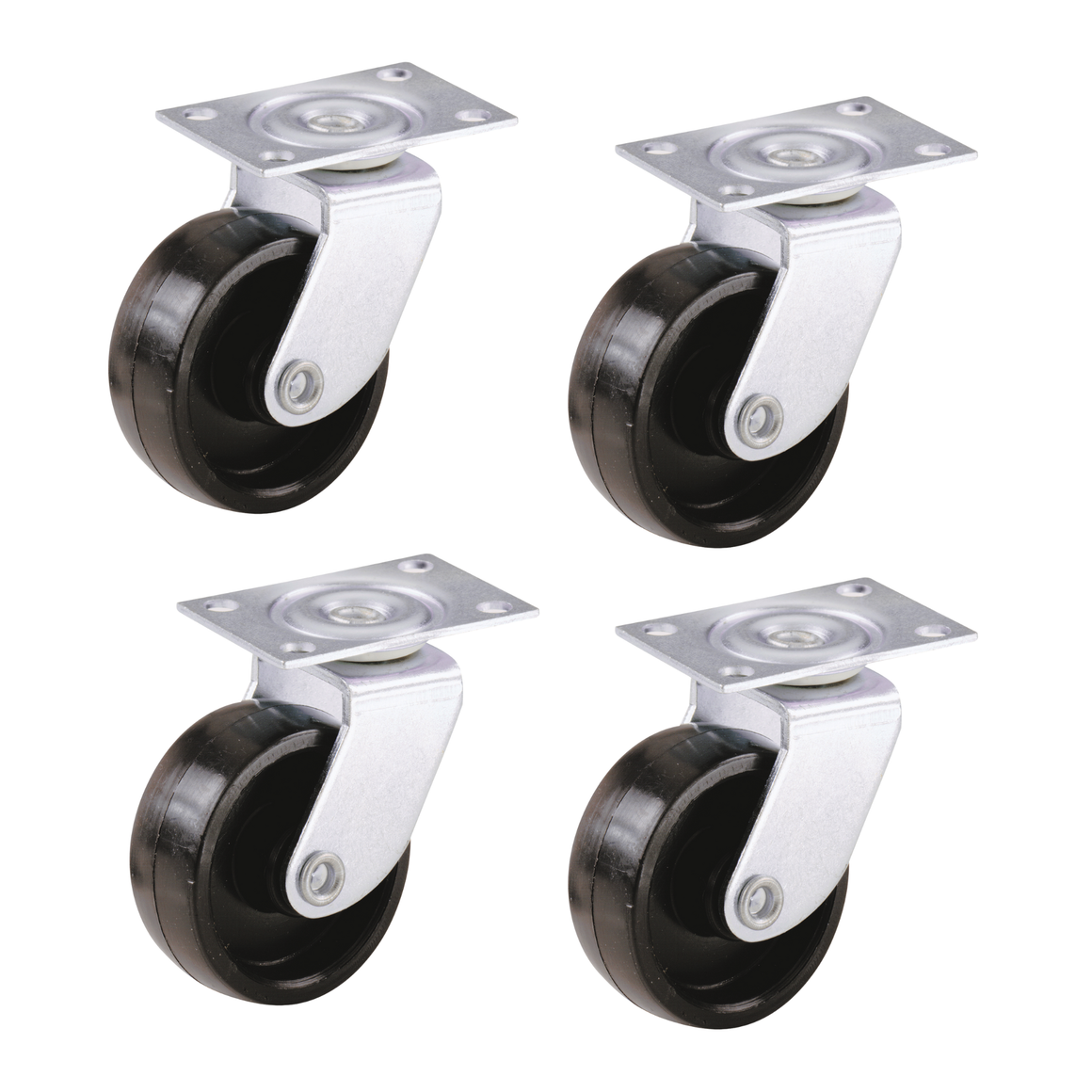 Swivel Castor Wheels 40mm Diameter, Black Plastic, Plate Fixing, 23kg Load - 4 Pack