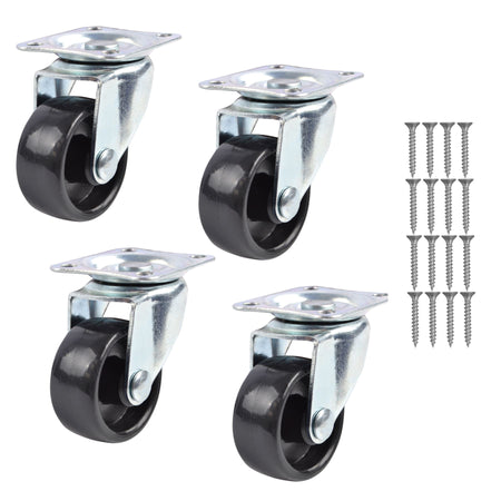 Swivel Castor Wheels 40mm Diameter, Black Plastic, Plate Fixing - 4 Pack