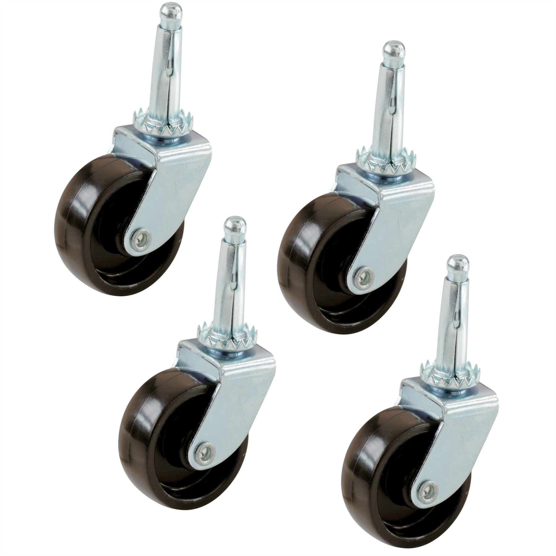 Swivel Castor Wheels 40mm Diameter, Black Plastic, Stem Fixing - 4 Pack