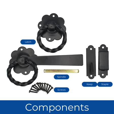 Ring Gate Latch Heavy Duty Twisted 152mm (6 inch) - Black Powder Coated