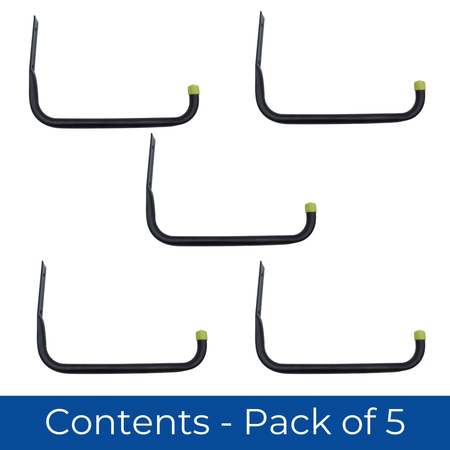 Black Universal Garage Hooks with Yellow End Caps - 25cm - 5 Pack