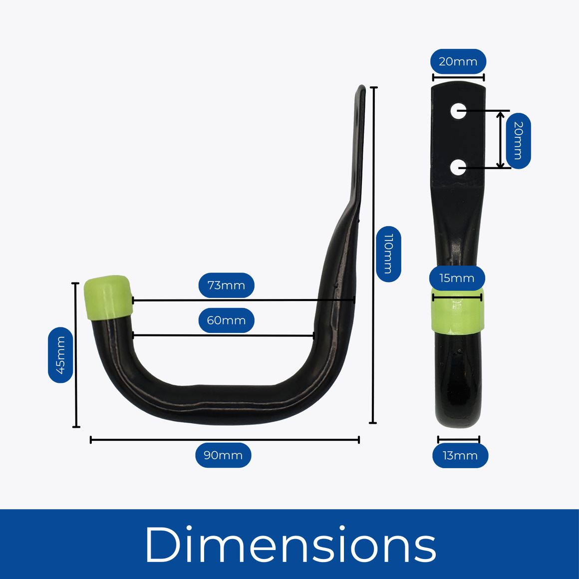 Transform your storage space with our versatile set of 5 heavy-duty wall hooks. Available in 4 practical sizes, these robust hooks are engineered to handle everything from lawn mowers and bikes to garden hoses and tools. Each hook features a durable powder-coated finish for lasting rust protection and supports impressive loads up to 30kg, ensuring reliable performance for your heaviest equipment.