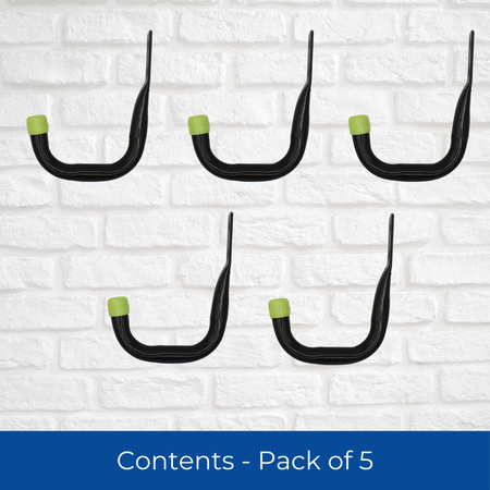 Black Universal Garage Hooks with Yellow End Caps - 7cm - 5 Pack