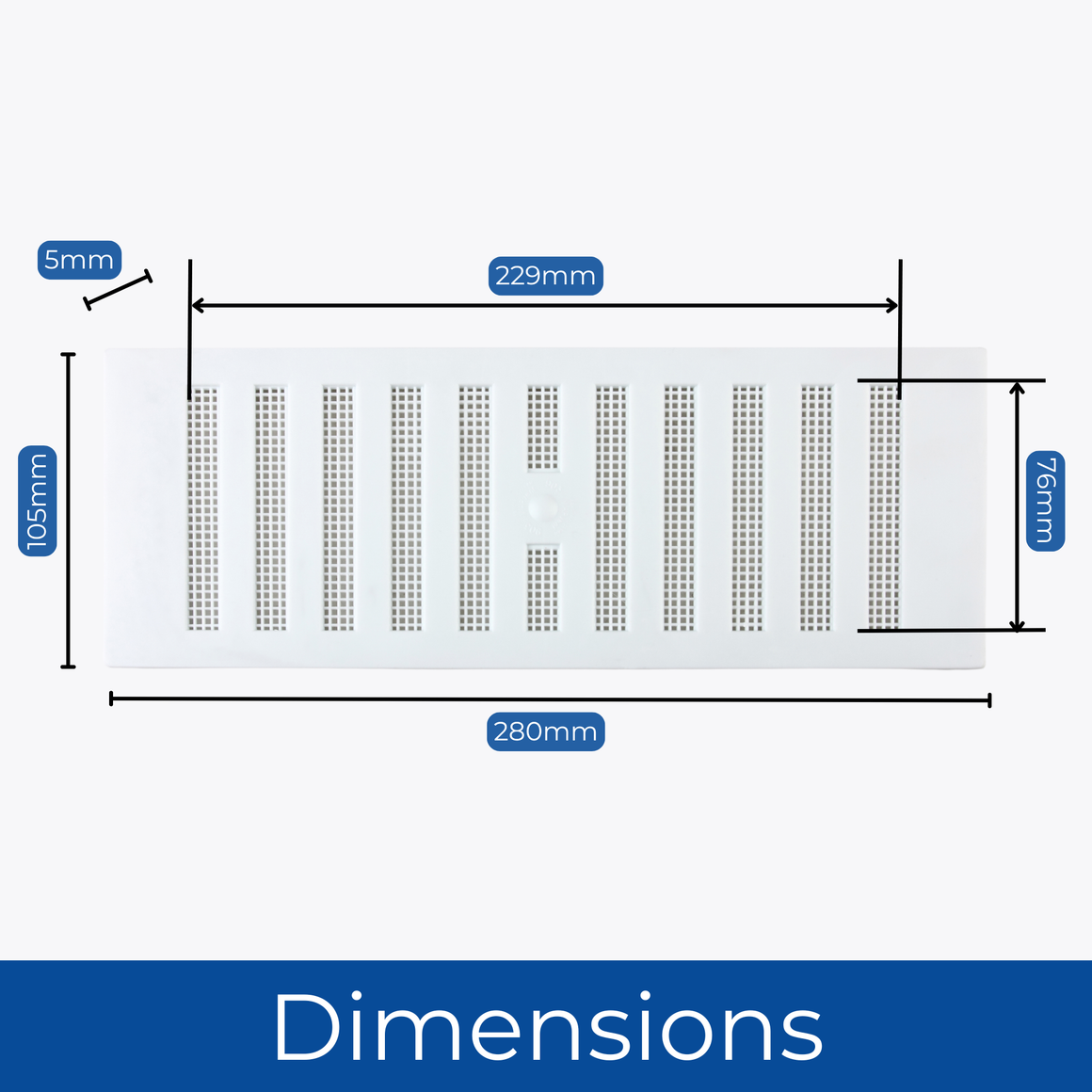 For openings up to 229mm x 76mm (9" x 3") | Airflow when open: 2240sq mm
