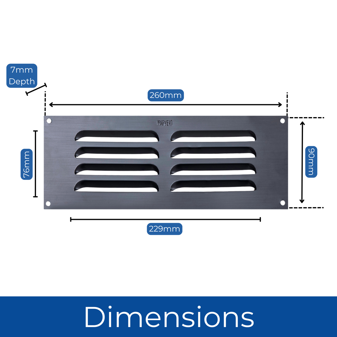 The vent is easy to install with surface fixing using four No.6 gauge round head screws (not included). Its robust design encourages a steady flow of air, making it a practical choice for improving air circulation in various building applications.