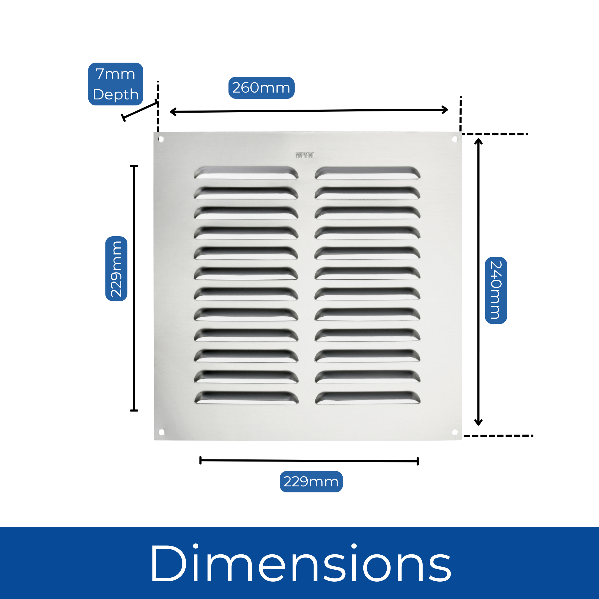 The vent is easy to install with surface fixing using four No.6 gauge round head screws (not included). Its design encourages efficient air circulation, making it a versatile choice for enhancing ventilation in various environments.
