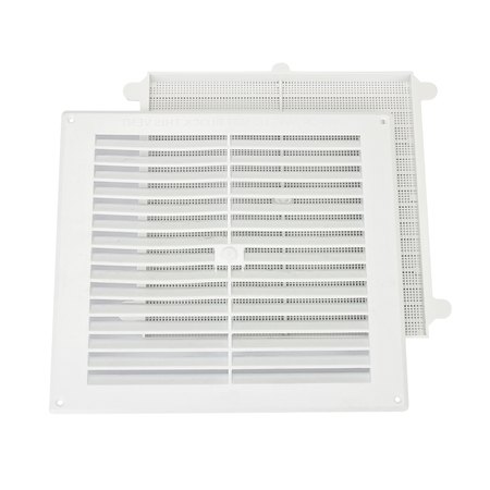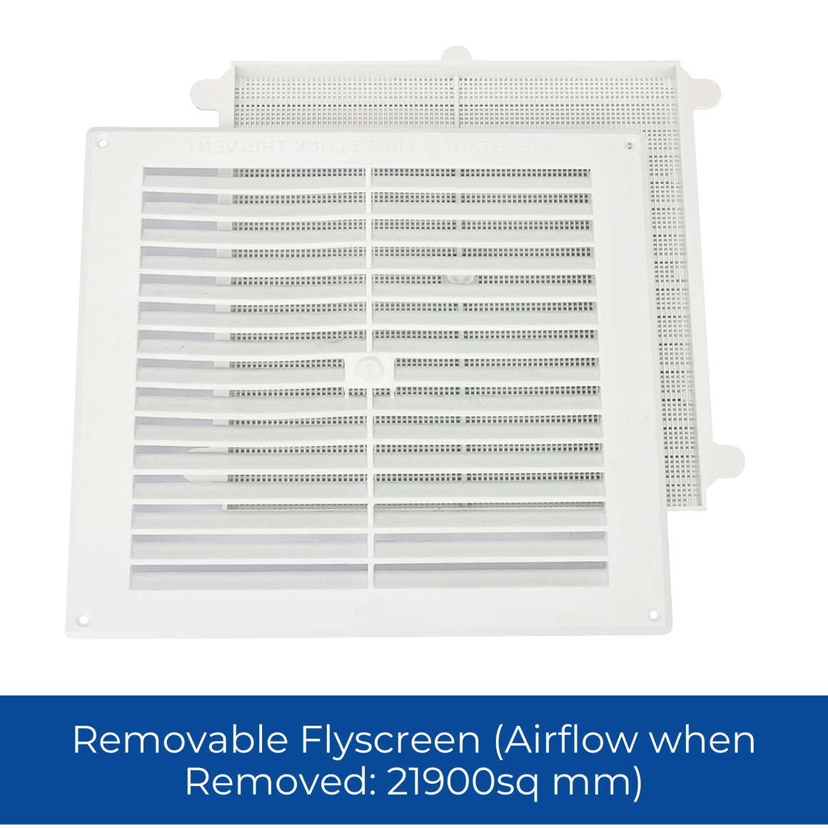 White Plastic Louvred Vent with Removable Flyscreen - 9x9 Inch