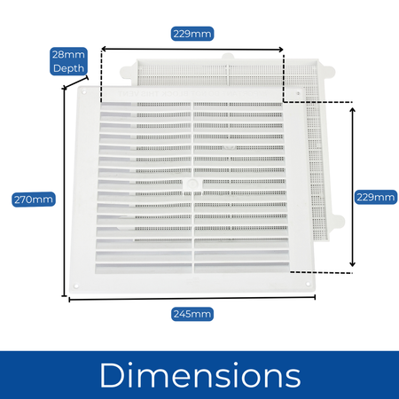 Transform your space with our premium white louvre vent, engineered for maximum airflow and protection. Measuring 229x229mm (9"x9"), this robust vent features a removable flyscreen that delivers impressive ventilation up to 21,900mm² while effectively keeping dust and insects at bay. The durable plastic construction ensures lasting performance in any environment.