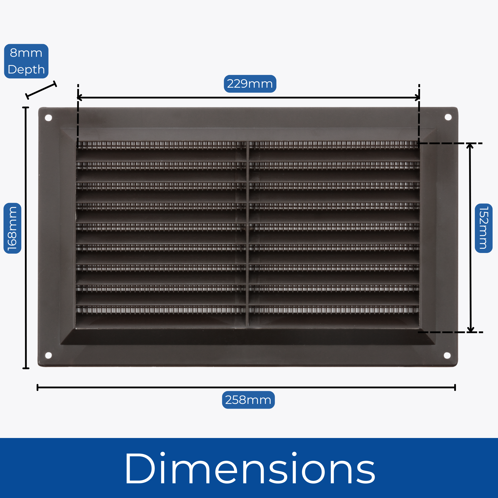 Plastic Louvred Vent with Fixed Flyscreen - Brown - 9x6 Inch