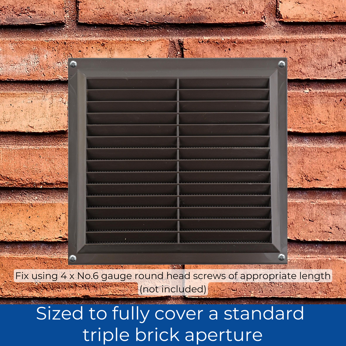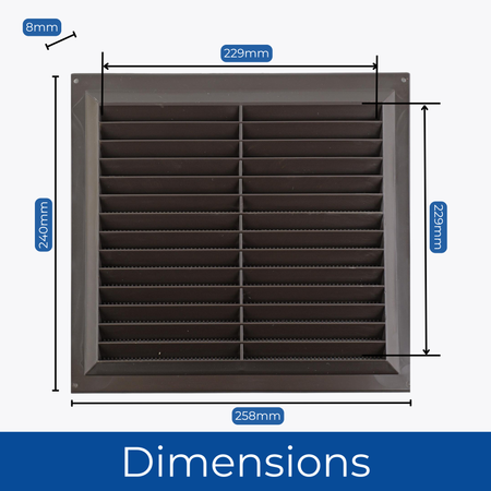 Plastic Louvred Vent with Fixed Flyscreen - Brown - 9x9 Inch