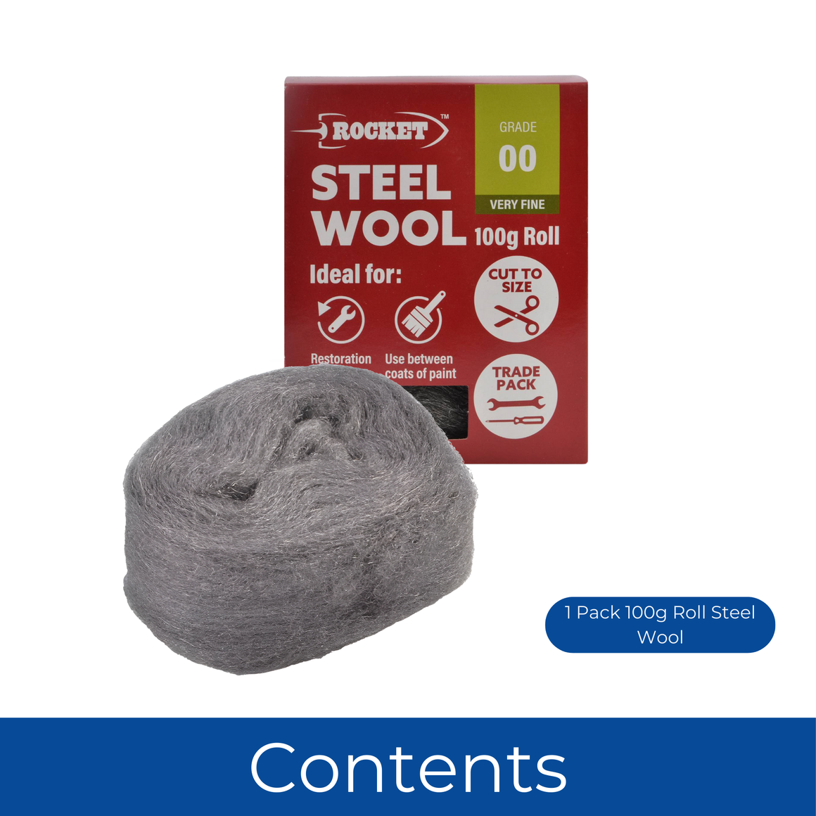 Very Fine Steel Wool Grade 00 for Cleaning Wood Metal Glass 100g Roll PK1