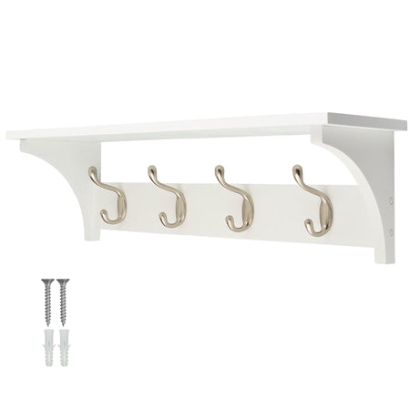 Victorian 4 Hook Coat Rack Wall Mounted with Shelf - 56cm - White