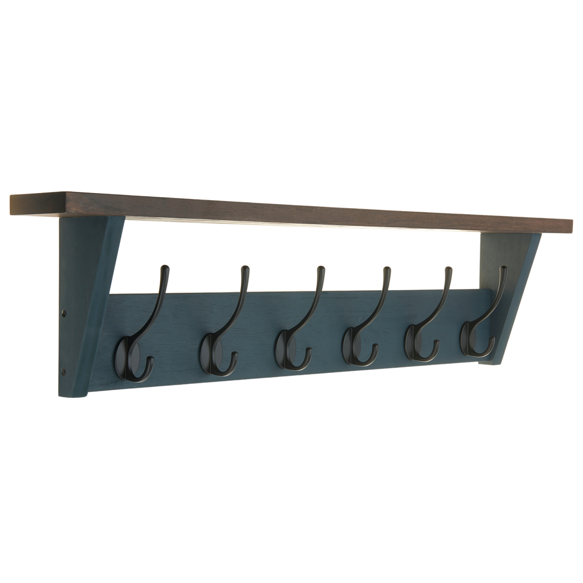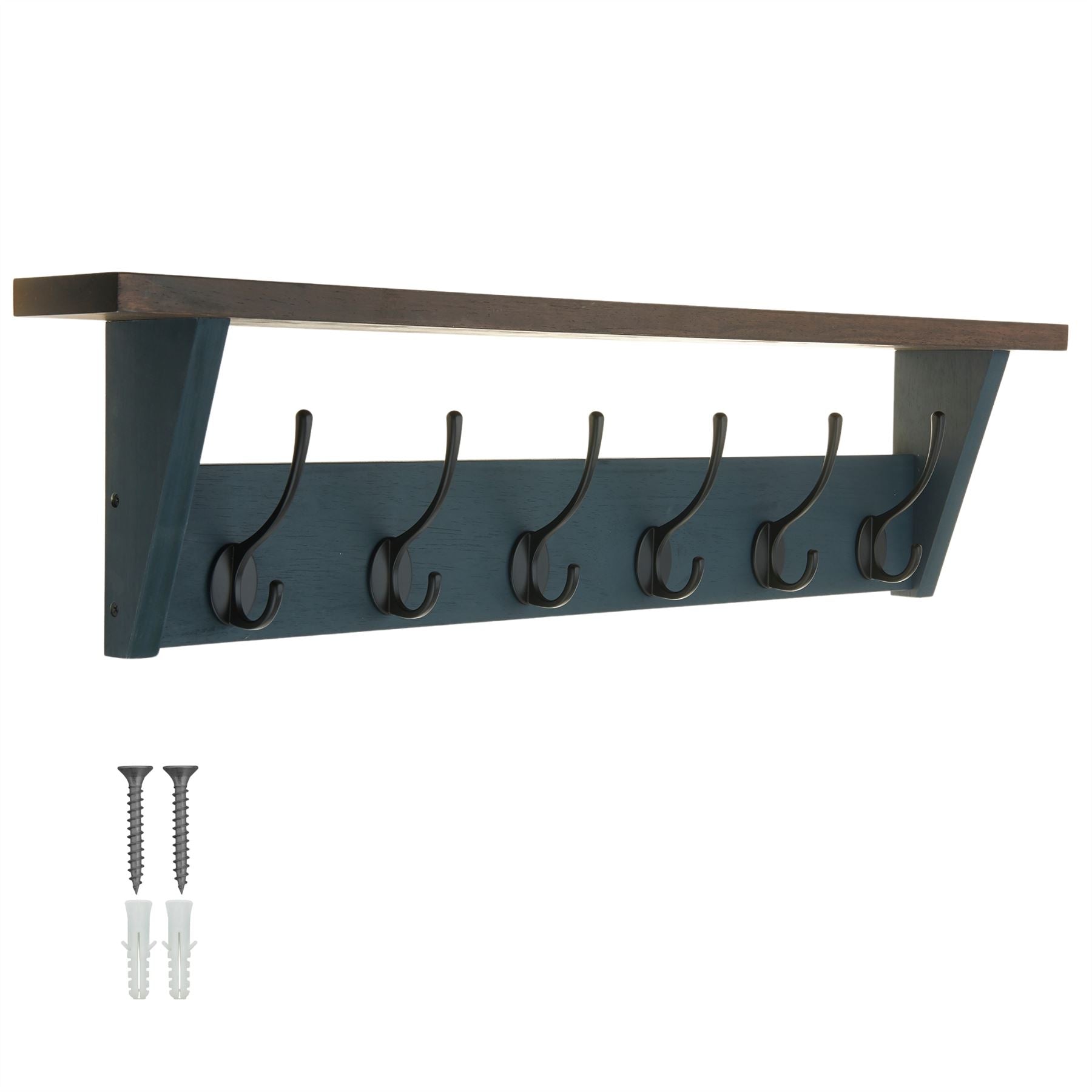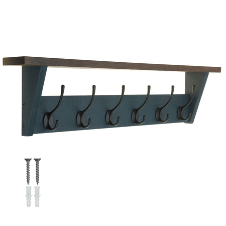 STURDY STORAGE - Six durable double hooks and a wide top shelf provide ample space for both hanging and display