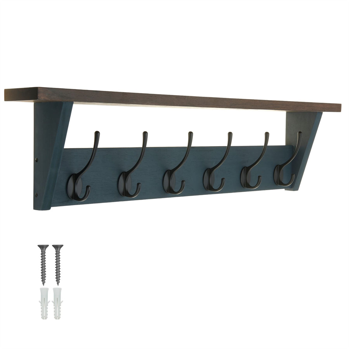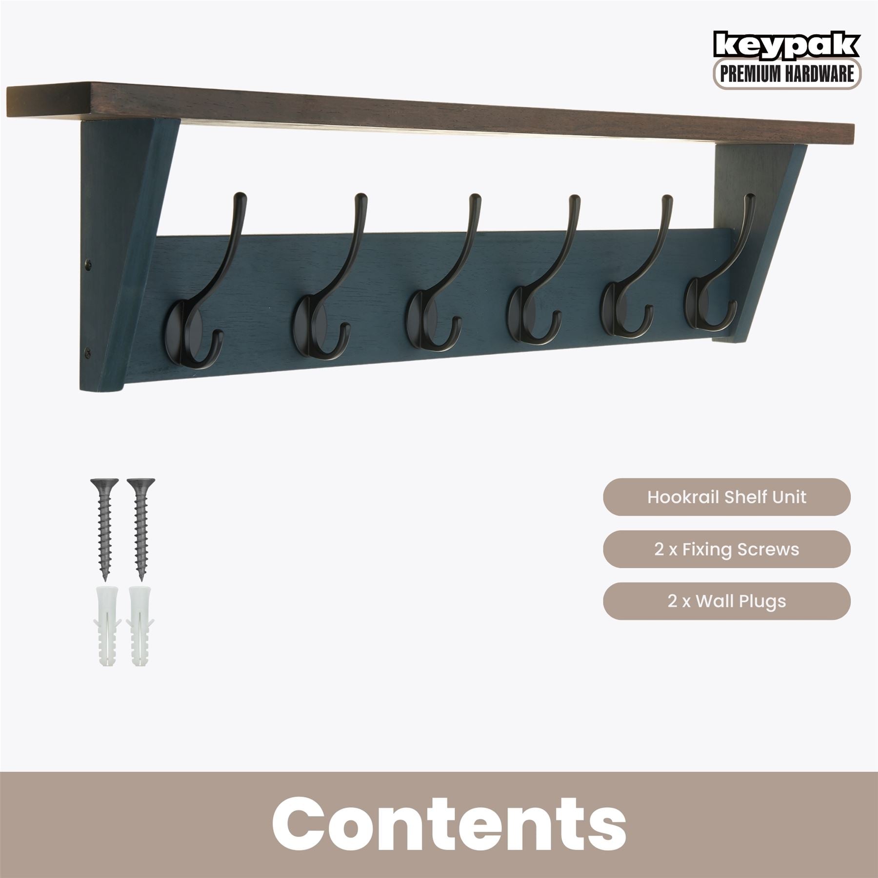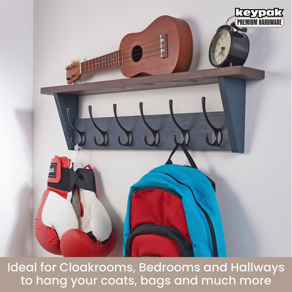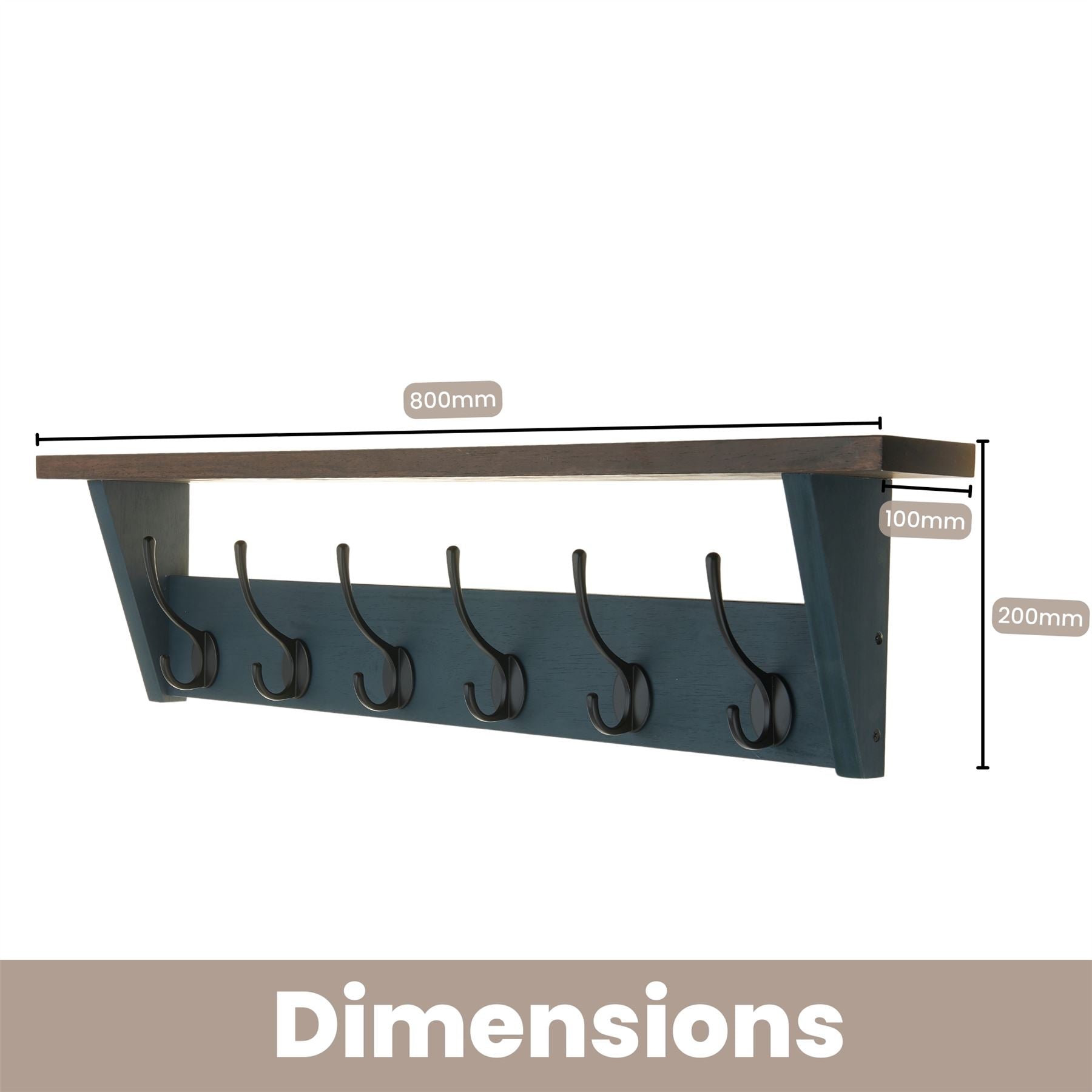 Victorian 6 Hook Coat Rack Wall Mounted with Shelf- Grey Oak Effect