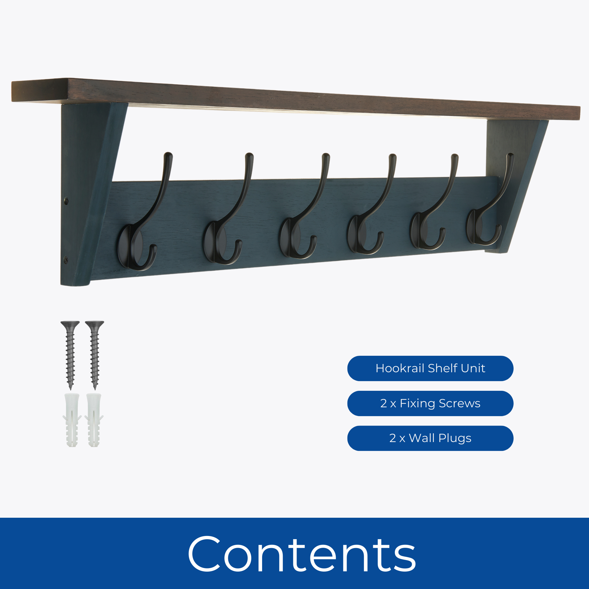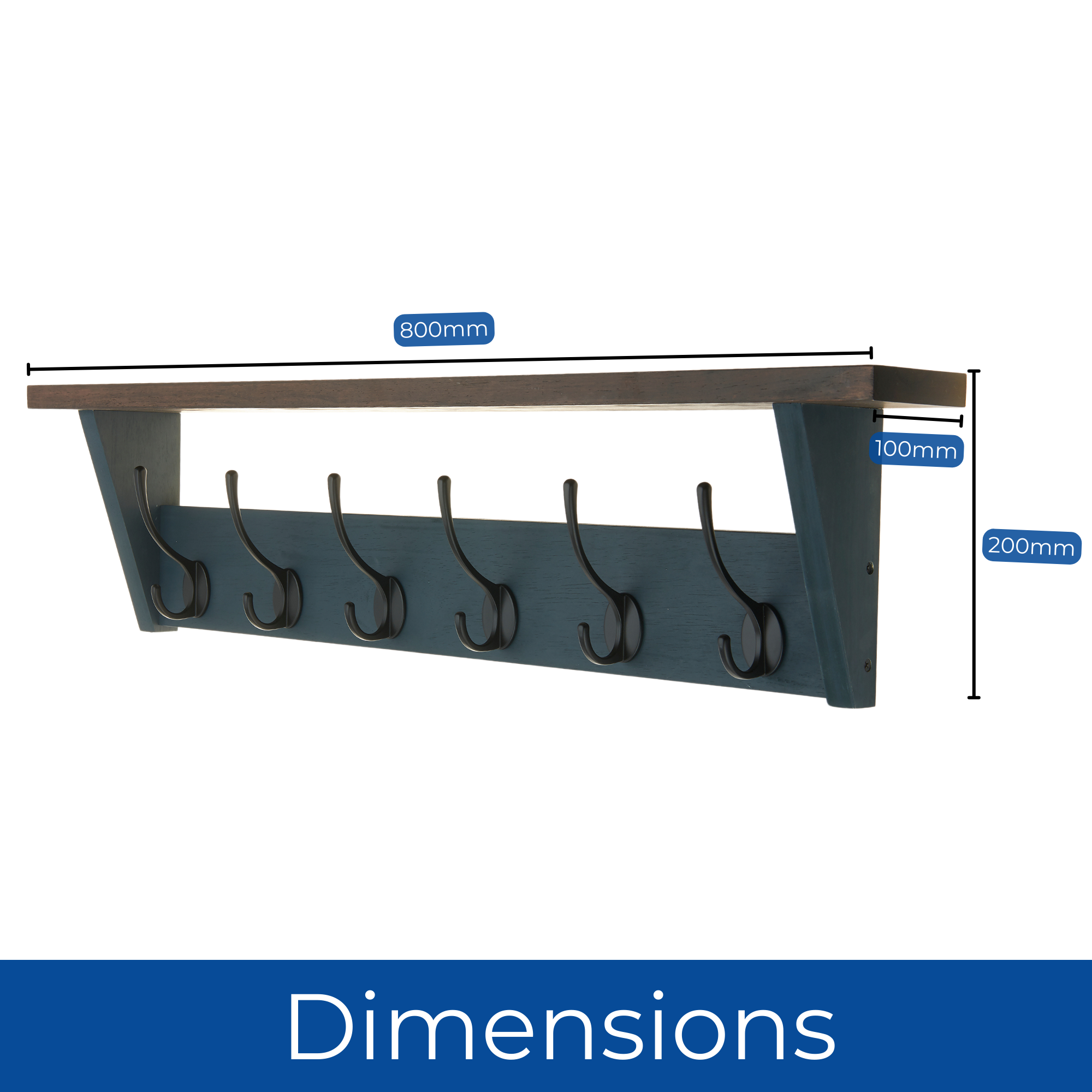 Victorian 6 Hook Coat Rack Wall Mounted with Shelf- 800mm-Grey Oak Effect