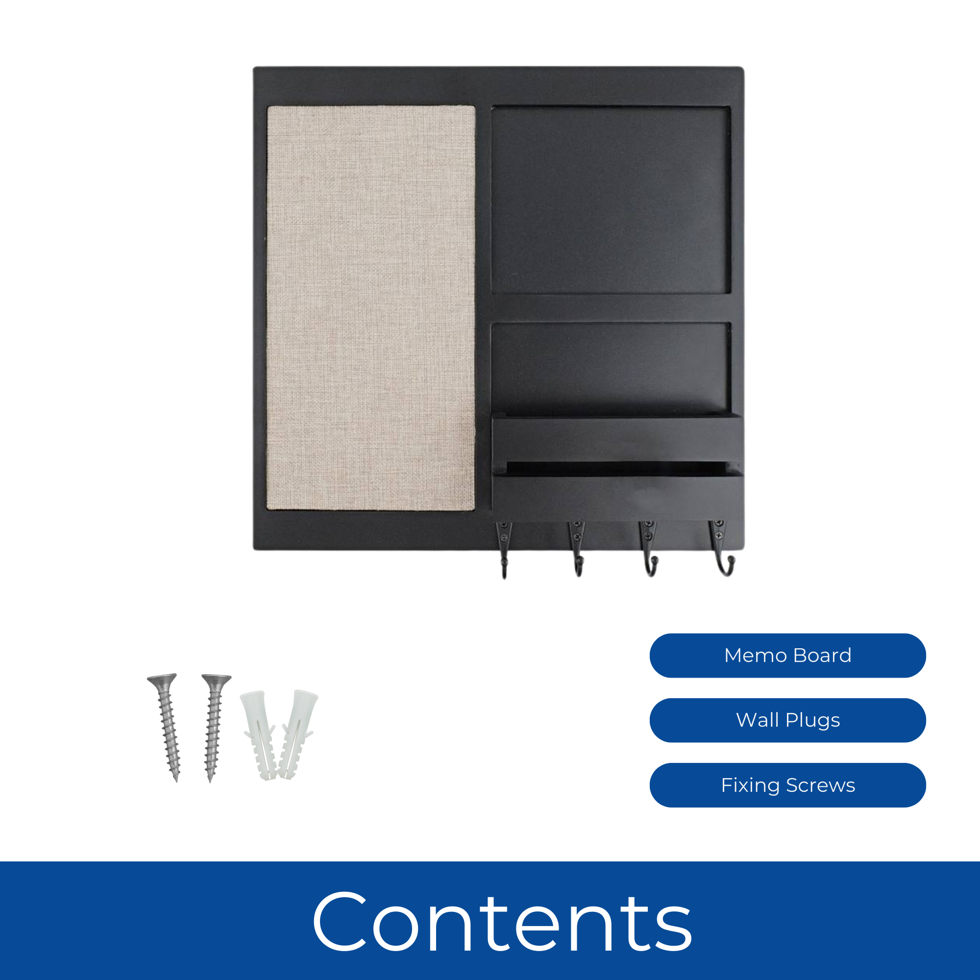 Wall Mounted Memo Board With Key Hooks & Letter Holder Memo Organiser Shelf