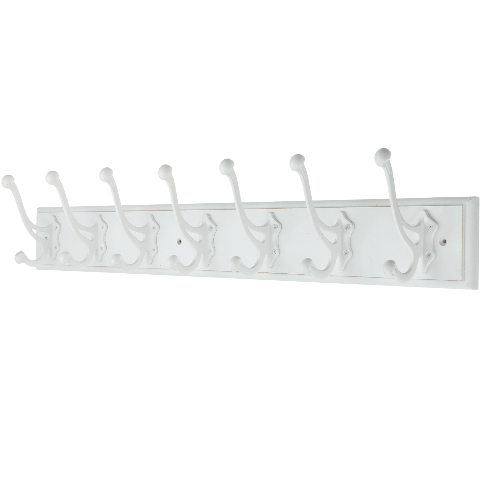 White Wooden Wall Mounted Coat Rack with White Rustic Double Hooks - 7 Hooks
