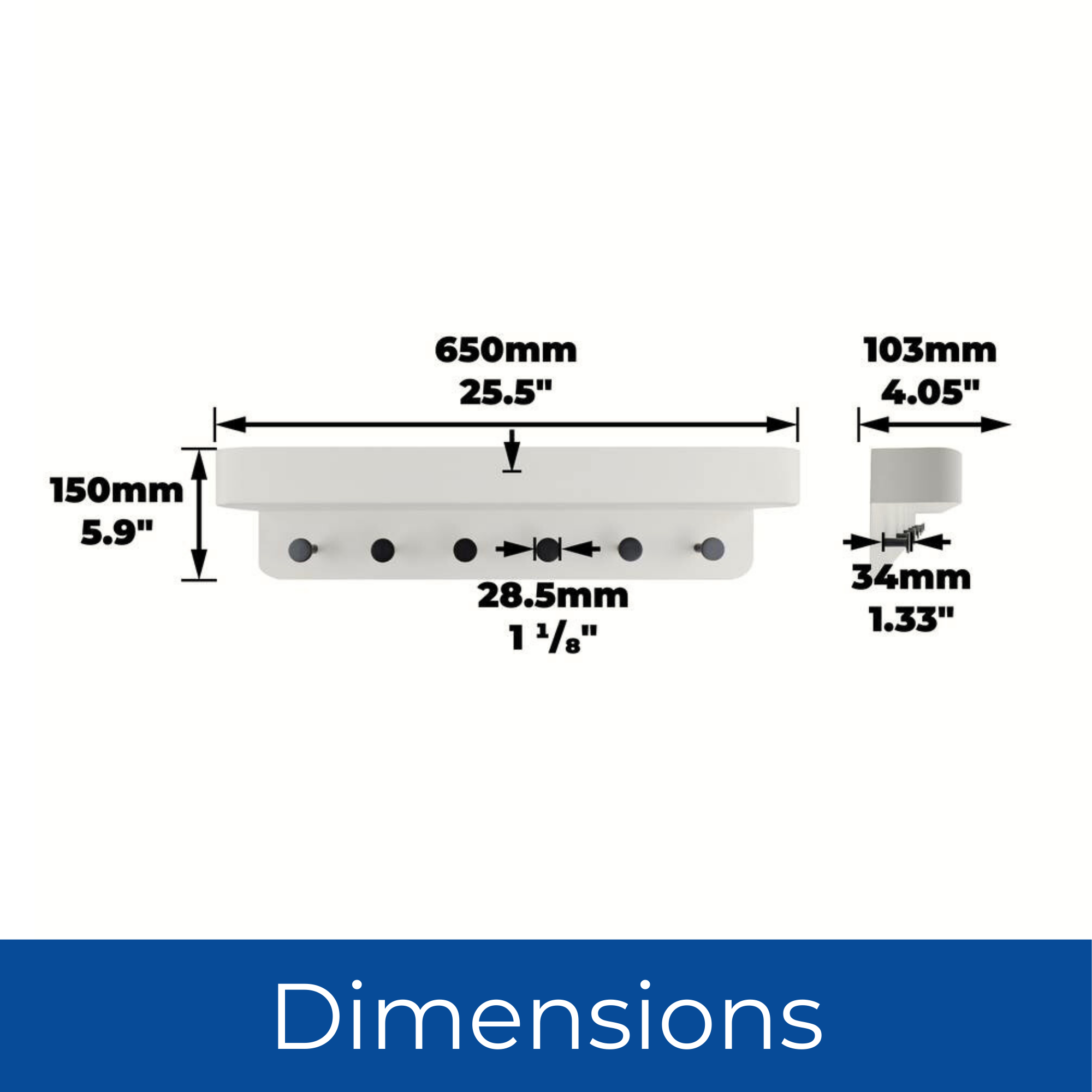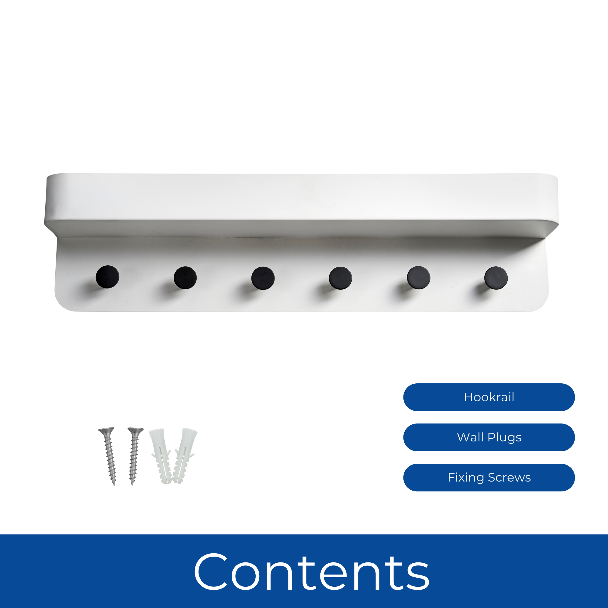 Organise your space with the Keypak Shelf Combo - a sleek wall-mounted whiteboard organiser featuring six durable black hooks and a practical display shelf. Designed for function and form, this all-in-one storage solution is ideal for entryways, kitchens, and family rooms. Use the whiteboard for reminders or messages while keeping coats, bags, and keys tidy and accessible. The modern contrast of white and black fits effortlessly into contemporary, industrial, or monochrome interiors.